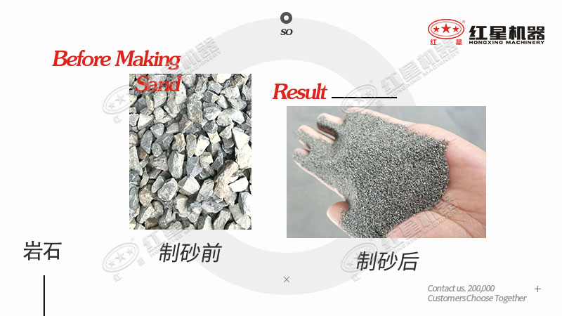巖石經(jīng)制砂設(shè)備處理前后對比圖