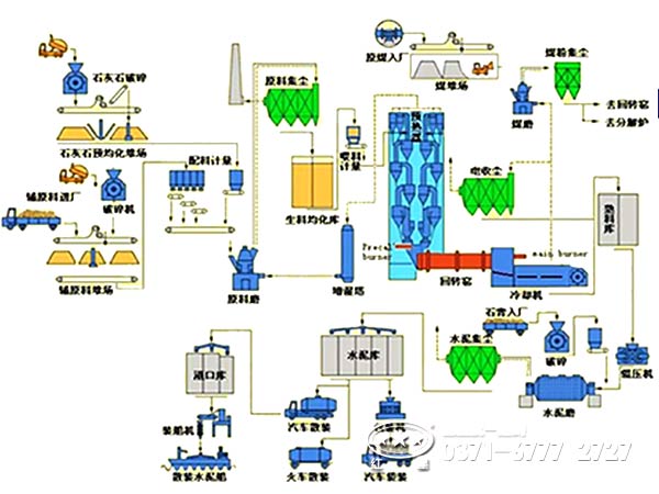 白灰回轉(zhuǎn)窯煅燒工藝可以分為濕法與干法,根據(jù)物料性質(zhì)而選擇。通常多用濕法工藝。濕法回轉(zhuǎn)窯生產(chǎn)時(shí)在生料磨中加入水,將生料制成含水為3%5左右的料漿,經(jīng)均化達(dá)到要求的料漿由窯頭喂料機(jī)送入窯內(nèi)煅燒成熟料,出窯熟料經(jīng)冷卻機(jī)冷卻,送入熟料庫,原煤經(jīng)烘干兼粉磨成煤粉后再燃燒供給給熟料煅燒所需熱量。